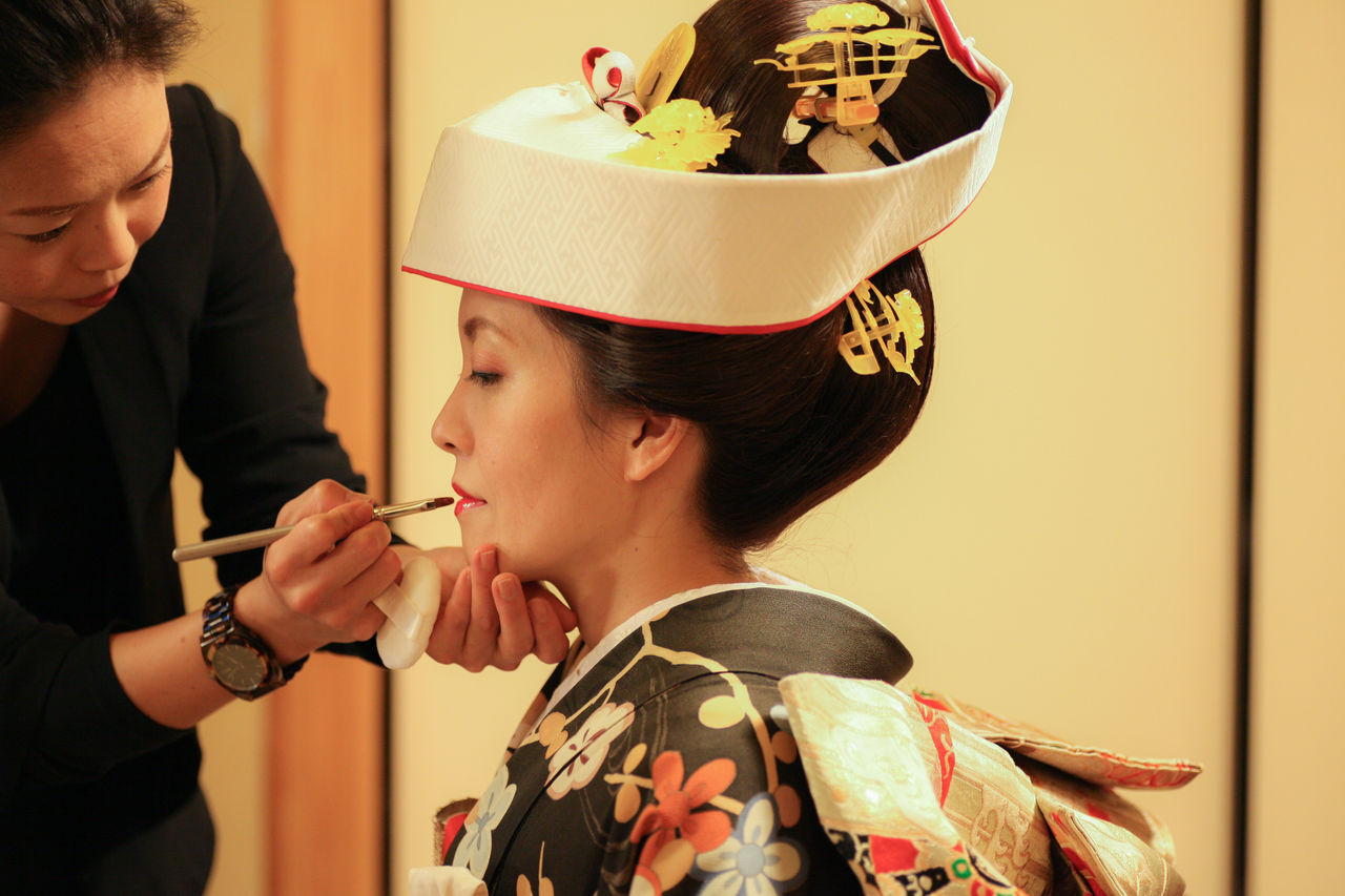 綿帽子を外して洋髪にチェンジ。