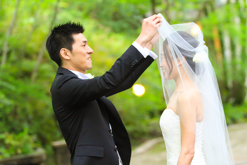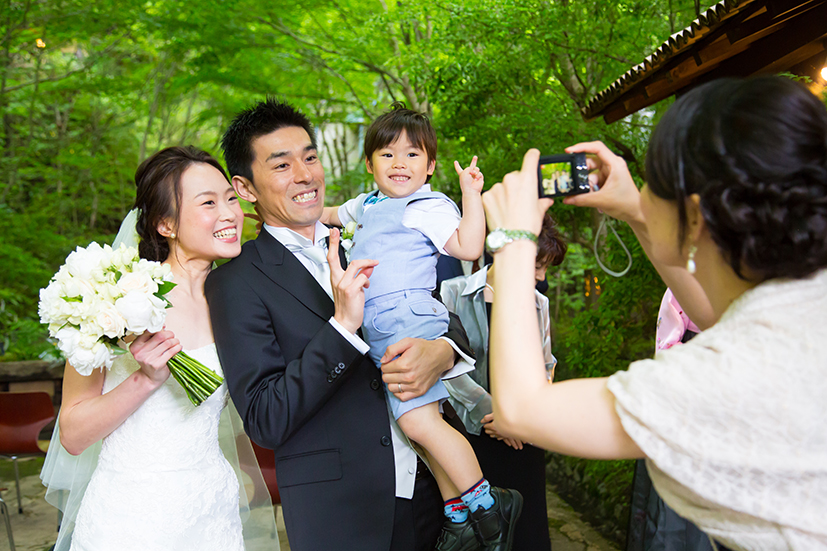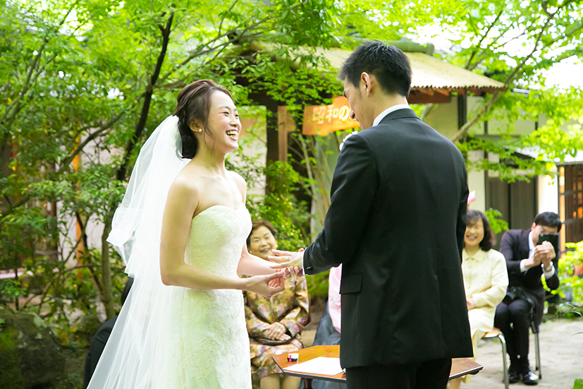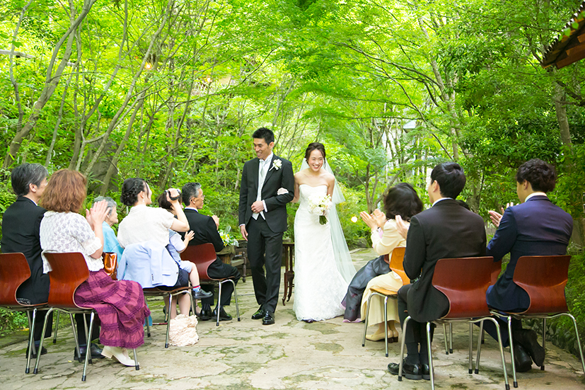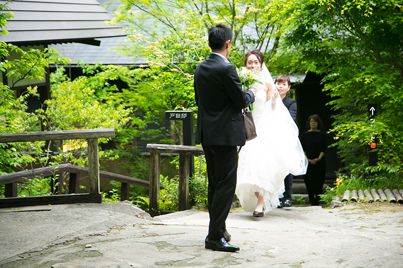 さて無事撮影を終えたおふたりはハイライトである挙式会場へ。この日は平日とゆうこともあり、特別にある旅館さんのお庭を使わせていただいてのガーデンウエディング。