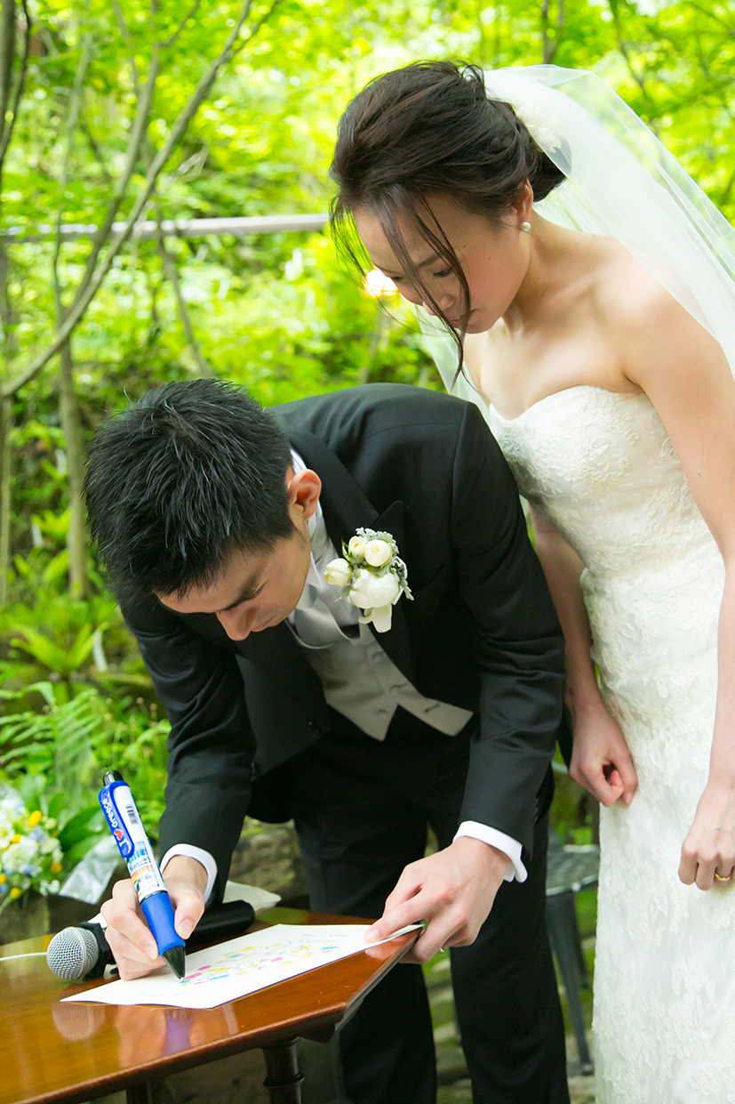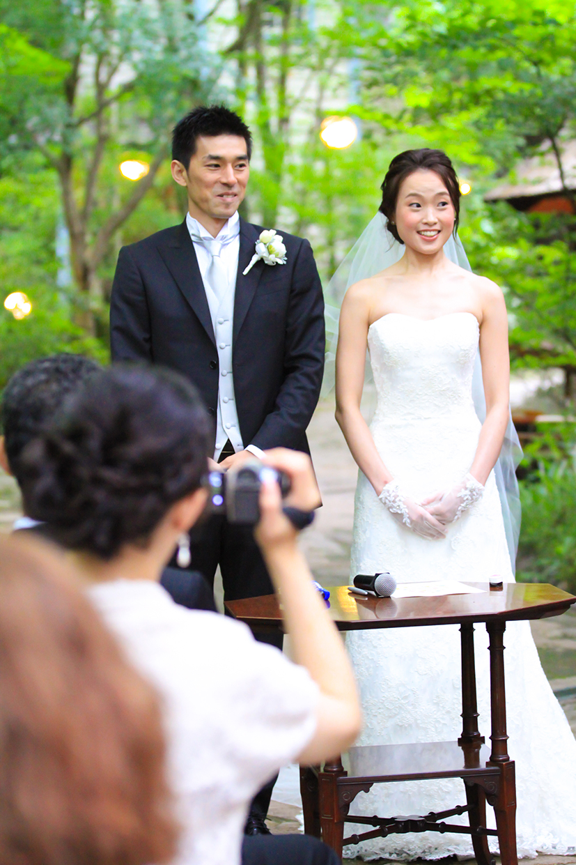 メールを見返してみると、初めておふたりとお会いしたのが昨年の10月でした。それから年末に改めてお会いして、挙式当日まで長かったようで、あっと言う間でした。途中地震があって、予定が変更になってしまった部分もありましたが、当日は余震も無く、ゲストの皆さんにも喜んで帰っていただけたようですので、私どもも喜ばしい限りでした。今思い返してもおふたりと過ごした時間はどの瞬間も光り輝いて、私にとっても大変思い出深いです。