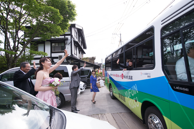 こうして結びを迎えたおふたりのyufuinでのwedding。また、素敵なおふたりのお手伝いをさせて頂いたこと心から感謝致します。今回も素晴らしいご縁を頂きおふたりと出会いました。はじめてお話しを伺った際は披露パーティーの事はあまり検討しておられなかったので、途中パーティをすることになり私は紹介したくださった知人にこっそり「当初と内容が変わってきてるけど大丈夫なのかな?」と相談していました。するとおふたりは「yufuin weddingのいろいろなプロの人達の話を聞くうちにお願いしたくなりました。それにせっかく来てくださるゲストの皆さんをしっかりとおもてなししたいと思って」と仰ってくださったそうです。なんと嬉しいことでしょうか!そして実は前撮りも行っているおふたりなのですが、今回はご紹介できないのが残念です。私が途中までしか同行できなかったのですが、とっても楽しかったみたいなので、今度機会がありましたら是非ご紹介させていただきたいと思います。