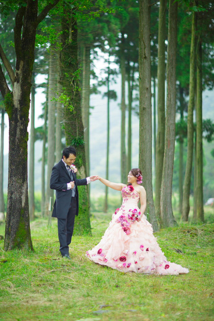 とゆうことで、今回は当日ロケフォトと神社式、披露パーティーの様子をお届け。ロケフォトと夕方の挙式&披露宴とゆう盛りだくさんの1日。早速御覧ください。